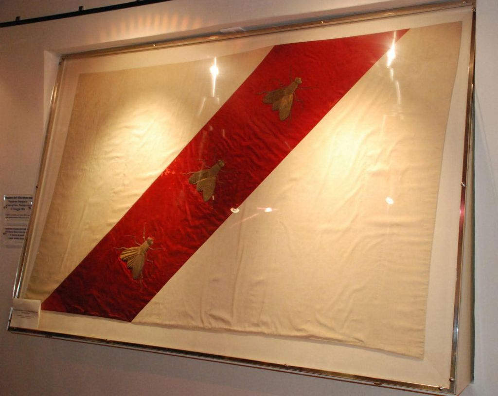 The flag of the Island of Elba, characterized by three golden bees on a white field crossed by a red diagonal band, is conventionally associated with the events of May 1814, when Napoleon Bonaparte, aboard the British ship Undaunted anchored off Portoferraio, is said to have conceived its design. However, this interpretation obscures the deeper symbolic genealogy of the emblem. The bees depicted on the flag are not generic animals but golden bees, that is, stylized representations of precious objects, whose significance derives from a long and complex tradition of political, religious, and mythological symbolism.