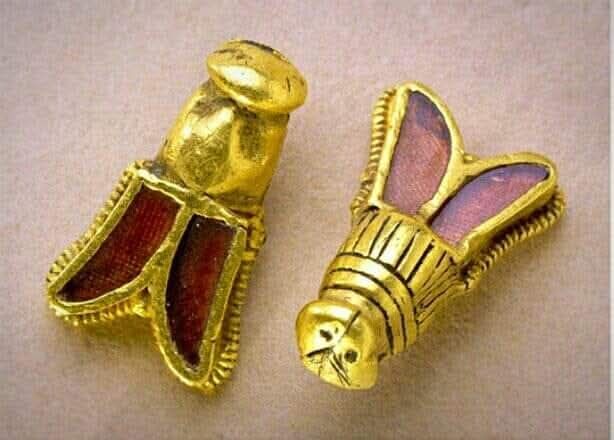 Napoleon’s adoption of the bee also drew explicitly upon early medieval precedents. On 27 May 1653, the tomb of Childeric I, king of the Franks, was discovered in Tournai. Among the grave goods were approximately three hundred golden bees or cicadas, documented in detail by Jean-Jacques Chifflet in Anastasis Childerici I (1655). Childeric, who died in 481 CE, was the last pagan Frankish king and the father of Clovis, the first Christian ruler of the Franks. The Merovingian dynasty thus represented, for Napoleon, the most ancient and symbolically potent lineage of French sovereignty, untainted by later feudal or ecclesiastical constraints.
