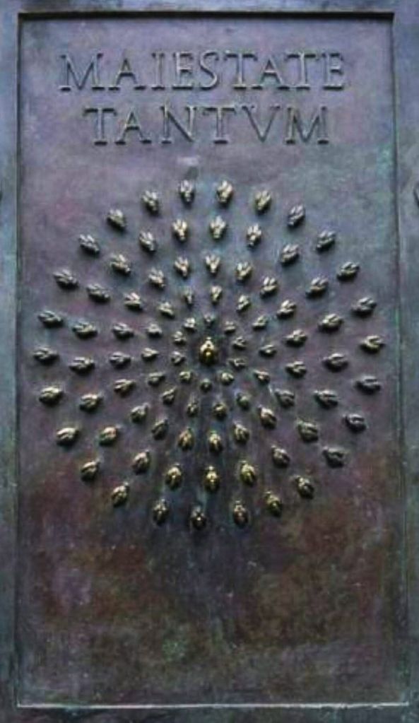 The bee motif also appears in early modern Italian political iconography. In 1640, beneath the equestrian monument of Ferdinand I de’ Medici in Florence, Pietro Tacca created a bronze plaque adorned with ninety bees and a central queen bee, symbolizing the political unity of the Florentine territories under ducal authority. The bronze was cast from Ottoman cannons, further associating the imagery with military power and Mediterranean geopolitics, including the strategic role of Portoferraio and the Island of Elba in controlling the Tyrrhenian Sea.